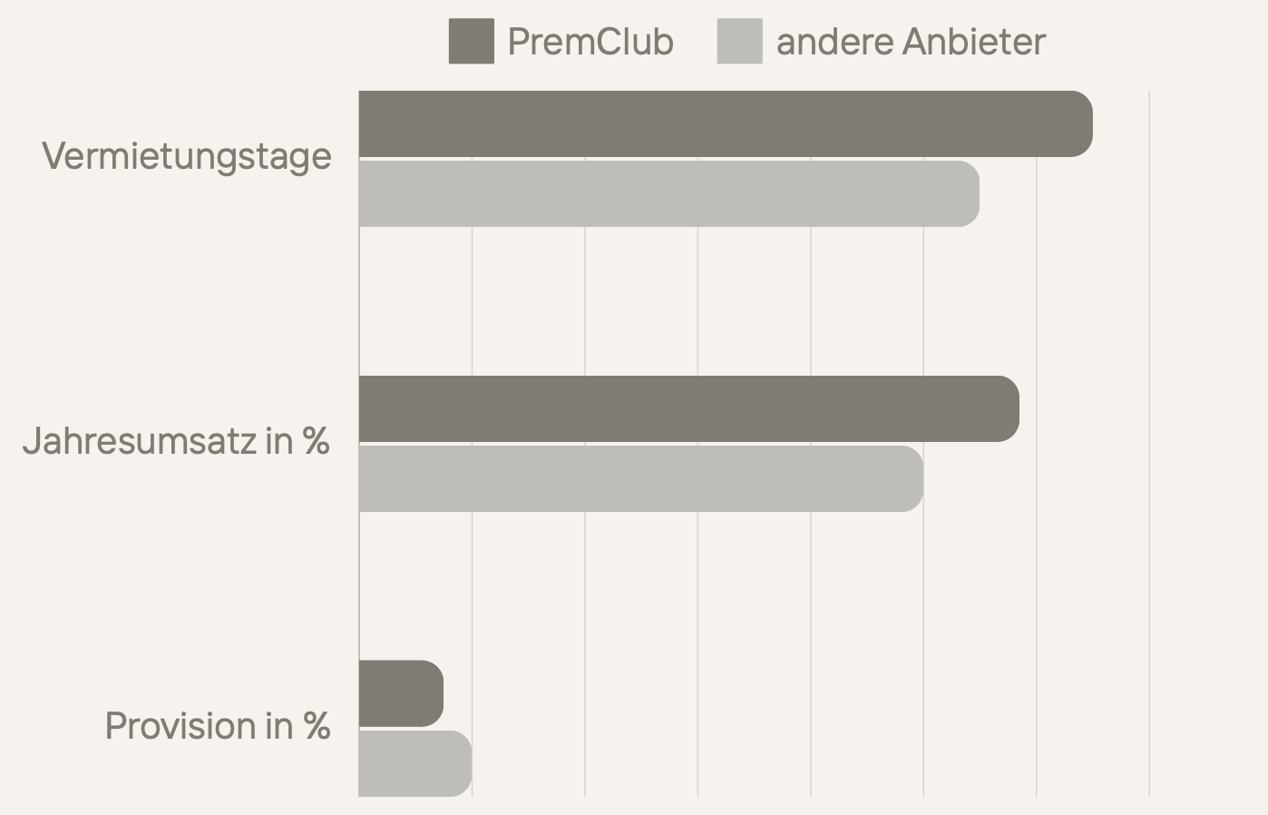 Wir sagen: Leistung hat seinen Preis. Allerdings wissen wir sehr wohl, wieviel ein Eigentümer bereit ist, für den Service zu zahlen. Wir denken, dass nach Abzug von Portalprovisionen, Wäschpaket und Reinigung mehr übrig bleiben sollte.